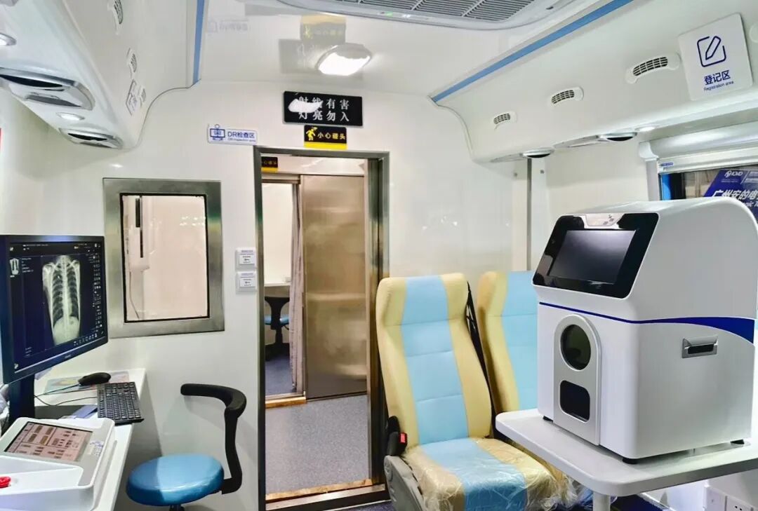 车载数字化医用X射线透视/摄影系统(车载动态/静态DR)广泛用于体检车、诊疗车及巡诊车等机动条件下的设施平台。在远离医院的现场开展体检、胸片拍摄、职业病筛查、尘肺病检查等X射线摄影诊断的常规体检和普通放射科检查。其中动态DR在常规车载静态DR的基础上,可在常规静态胸片拍摄后发现食道、肺部等显示病灶或斑块结节,需要进行动态透视吞咽、呼吸,以观察变化。同时适用于胸腹部、腰、尾骨等部位的X射线摄影检查。具有高端影像、深度诊断、动静兼容等性能特点。车载DR系列产品具有图像清晰、结构简单、灵活机动、远程传输、稳定可靠等性能特点。