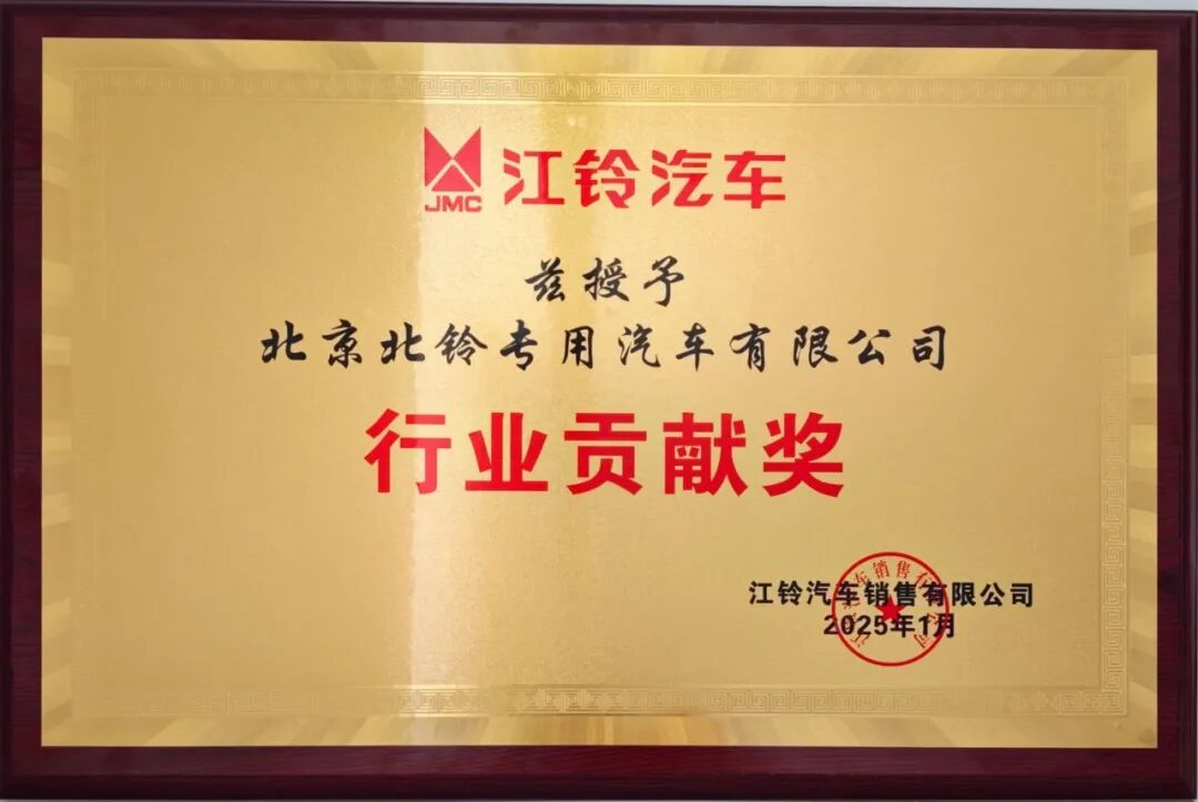 "行业贡献奖" 不仅是一份荣誉,更是一份责任。未来,北铃将继续以客户需求为导向,以技术创新为引擎,在专用车改装等领域持续突破。我们期待与江铃汽车及更多合作伙伴携手,共同打造中国专用车产业的国际名片,为全球客户创造更大价值!