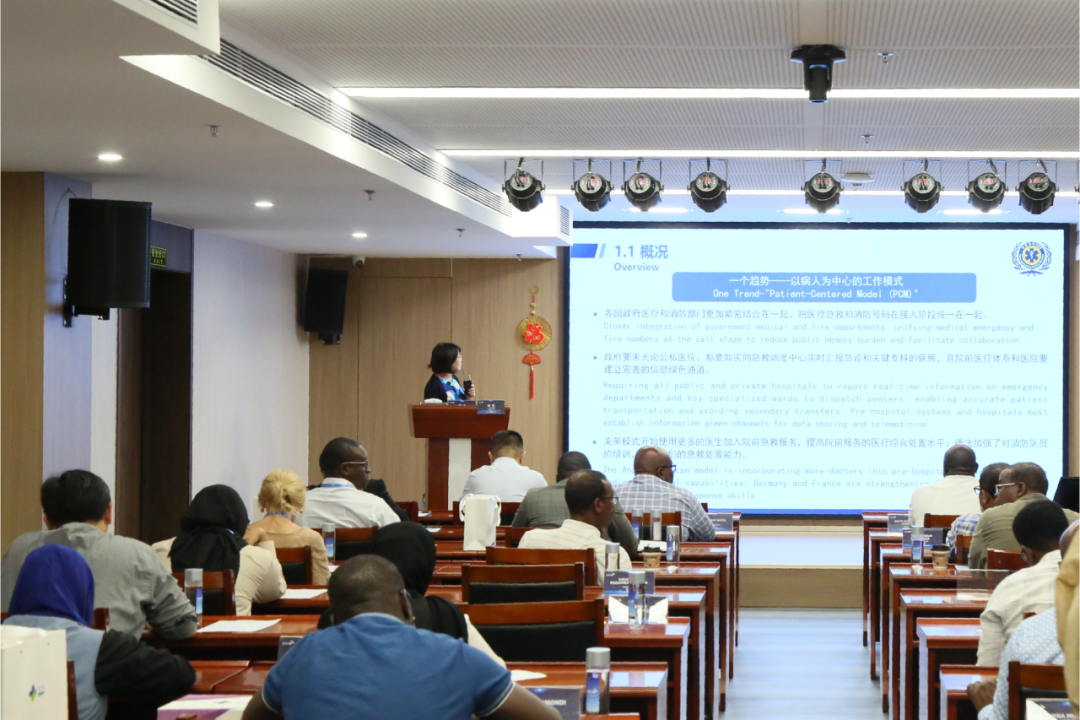 北京急救中心党委副书记、(公共卫生)主任医师、医学硕士、中非医院联盟急救联合工作组中方成员代表张莉,结合中非急救合作实践案例,在《助力“一带一路”国家急救能力可持续提升》分享中,倡导“因地制宜、长效赋能”模式,从急救体系建设、人才培训、区域协同等方面,通过定制化培训与机制共建,助力“一带一路” 国家构建自主可控的急救体系。